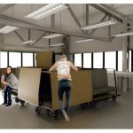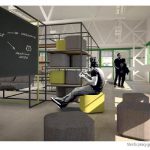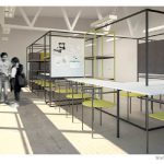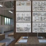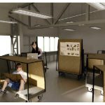2| Strefa przechowywania – główna strefa do przechowywania to miejsce na wyżej wspomniane pufy, aczkolwiek jest ich dużo więcej, ponieważ między strefami znajdują się półki na różnych wysokościach do przechowywania prac studentów. Przestrzenie instalacji zostały wykorzystane niemalże w każdej części.