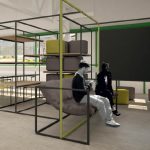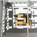 Ażurowa konstrukcja pozwoliła na stworzenie w adaptowanej przestrzeni – kolejnych mniejszych, o konkretnych funkcjach. Cały system opiera się na kątach prostych – tworząc sieć poszczególnych łączeń, które składają się na pewne, wydzielone strefy funkcjonalne. Na pierwszy rzut oka nie jest to oczywiste. Instalacja ta ma bowiem intrygować i zachęcać do wejścia i odkrywania poszczególnych stref.