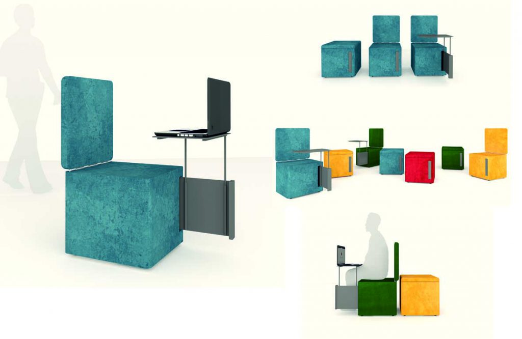 Zgodnie z założeniami konkursu mebel mógł mieć formę mebla do siedzenia ze zintegrowanym blatem, stolika do pracy z laptopem, mógł być wyposażony w osłonę akustyczną – ewentualnie inne elementy podnoszące funkcjonalność mebla i ergonomię pracy dla jednej lub kilku osób.