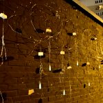 Domy zaistniały symbolicznie w formie małych drewnianych fluoryzujących elementów unoszących