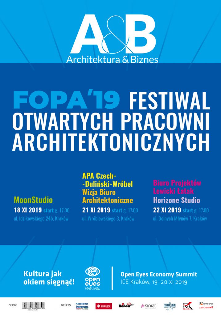 Już niedługo odbędzie się Festiwal Otwartych Pracowni Architektonicznych (FOPA) — unikalne wydarzenie towarzyszące kongresowi OPEN EYES ECONOMY SUMMIT w Krakowie, który odwiedza 2 500 osób. Zapraszamy do udziału w tych wyjątkowych spotkaniach, podczas których otwieramy drzwi najciekawszych krakowskich pracowni architektonicznych.