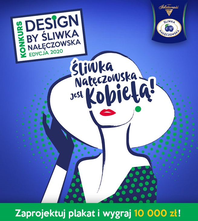 Zaprojektuj plakat, będący kreatywną interpretacją hasła: „Śliwka Nałęczowska jest kobietą!”. Projekt wykonaj na siatce z wkomponowanym logo marki Śliwka Nałęczowska, o wymiarach 120×180 cm.
