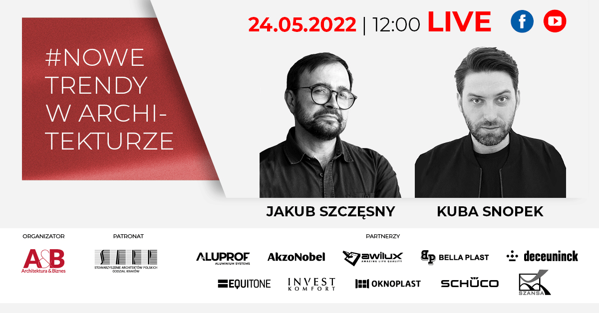 24 maja 2022 roku o godzinie 12.00 – dwóch wyjątkowych architektów! KUBA SNOPEK i JAKUB SZCZĘSNY!