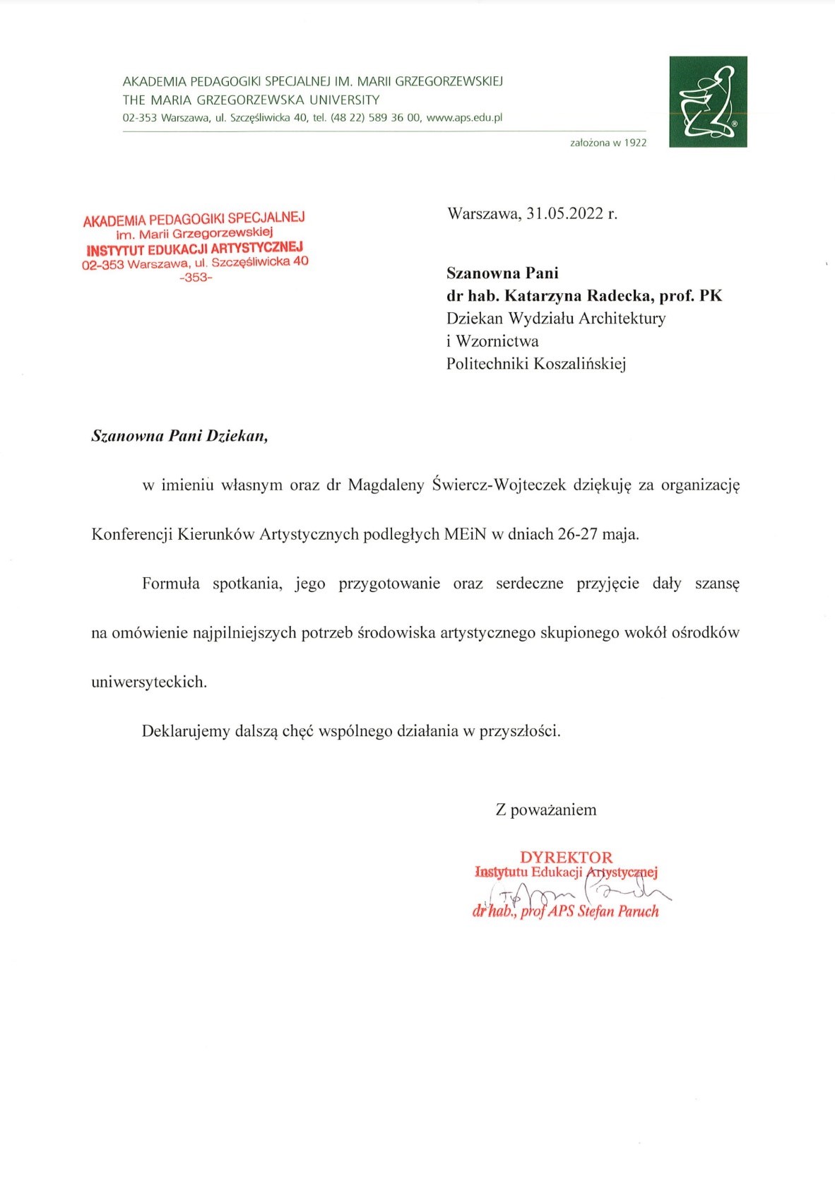 31 maj Podziękowania – Akademia Pedagogiki Specjalnej im. Marii Grzegorzewskiej Posted at 15:54h in OGŁOSZENIA, WYDARZENIA by IW Print page 0 Likes