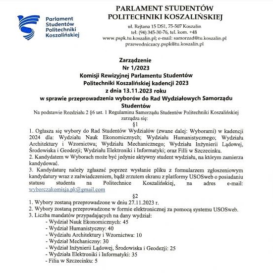 16 lis Wybory do wydziałowych Rad Studentów Posted at 10:09h in OGŁOSZENIA, WYDARZENIA 0 Likes ... Read More