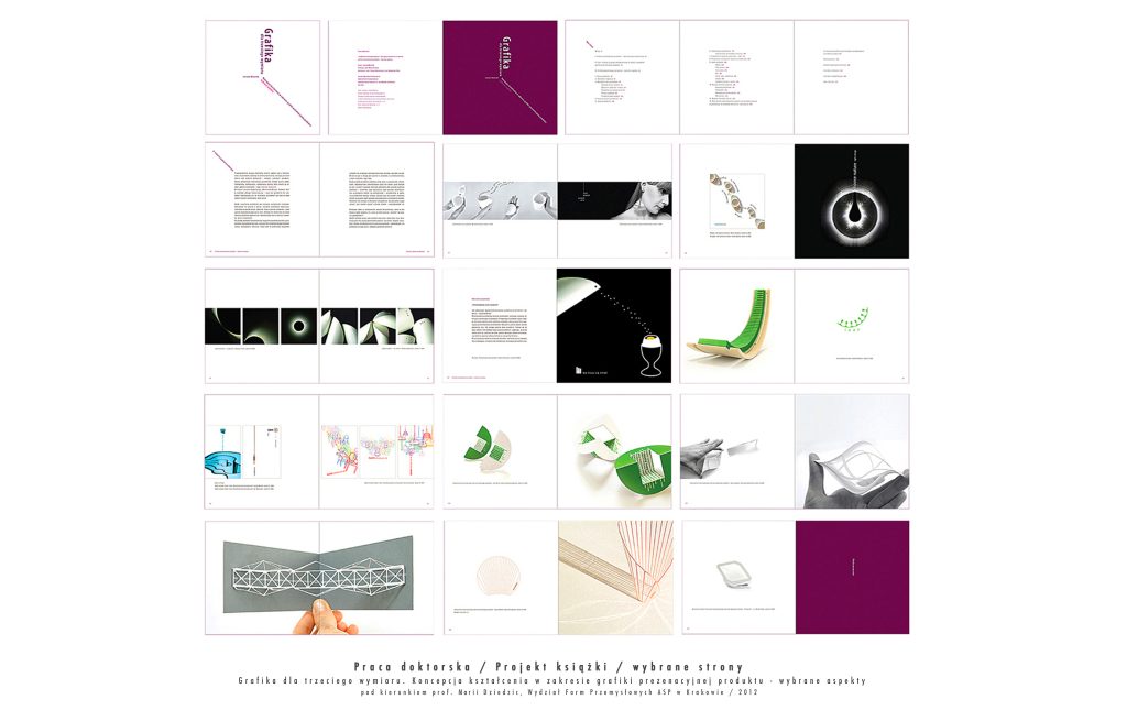 - Oprawa graficzna i skład książki: Grafika dla trzeciego wymiaru. Koncepcja kształcenia w zakresie grafiki prezentacyjnej produktu – wybrane aspekty. Praca doktorska; Kraków 2012.