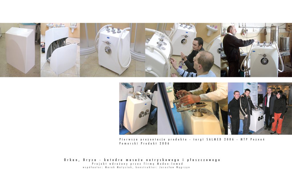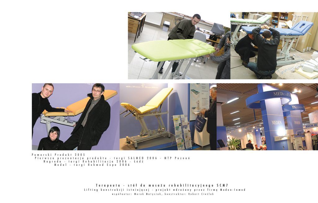 - Targi Salmed – prezentacja projektowanych produktów dla firmy Meden-Inmed: Terapeuta – stół do masażu i terapii manualnej, oraz Orkan – katedra natrysku biczowego; MTP Poznań 2006.