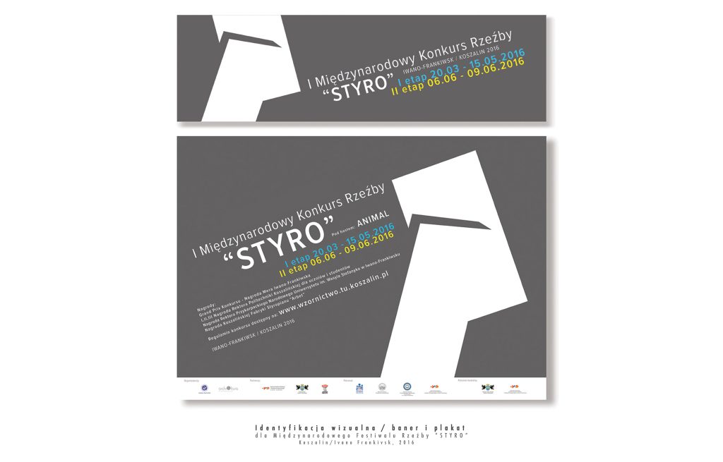 - Identyfikacja wizualna I Międzynarodowego Festiwalu Rzeźby „Styro”; Koszalin-Ivano Fankiwsk; 2016.