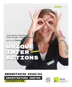 “Nigdy nie przestawaj odkrywać, to moja dewiza na życie. Od lat w drodze, od lat zgłębiam potrzeby prawdziwego życia w domu, od lat związana z IKEA. Moja pasja to odkrywanie piękna otaczającego nas świata, natury, historii, technologii, muzyki, smaków, zapachów oraz ludzkich potrzeb. Nieustannie pobudzam zmysły, które utrzymują u mnie wysoki poziom energii. Jestem absolwentką Instytutu Wzornictwa Politechniki Koszalińskiej (teraz WAIW PK), specjalność Projektowanie Wnętrz i Wystaw. Podczas swojej ścieżki byłam projektantem, nauczycielem akademickim a następnie dołączylam do IKEA. Ostatnie lata prowadzę zespoły kreatywne w różnych sklepach IKEA, w różnych miejscach. Dowodzę trzema zespołami: projektantów wnętrz, grafików oraz visual merchandiserów, dbając o jak najlepsze doświadczenia zakupowe konsumentów. Studia w dużej mierze pomogły mi się realizować. Nauczyły mnie jak w drodze projektanta łączyć “serce i rozum”. Dlaczego tak ważna jest nie tylko idea ale też możliwości i sposoby jej realizacji.Teraz zarządzając procesem projektowym oraz rozwijając projektanów, mogę dzielić się tymi wartościami. Dodatkowo nieustannie przekazuję dobrą energię i pozytywne myślenie zaszczepione we mnie w koszalińskim “magazynie”( bud. M – przyp. red.). Optymizm pobudza kreatywność. Gorąco polecam tę uczelnię, z dumą obserwuję jak się rozwija proponując coraz szerszą ofertę.